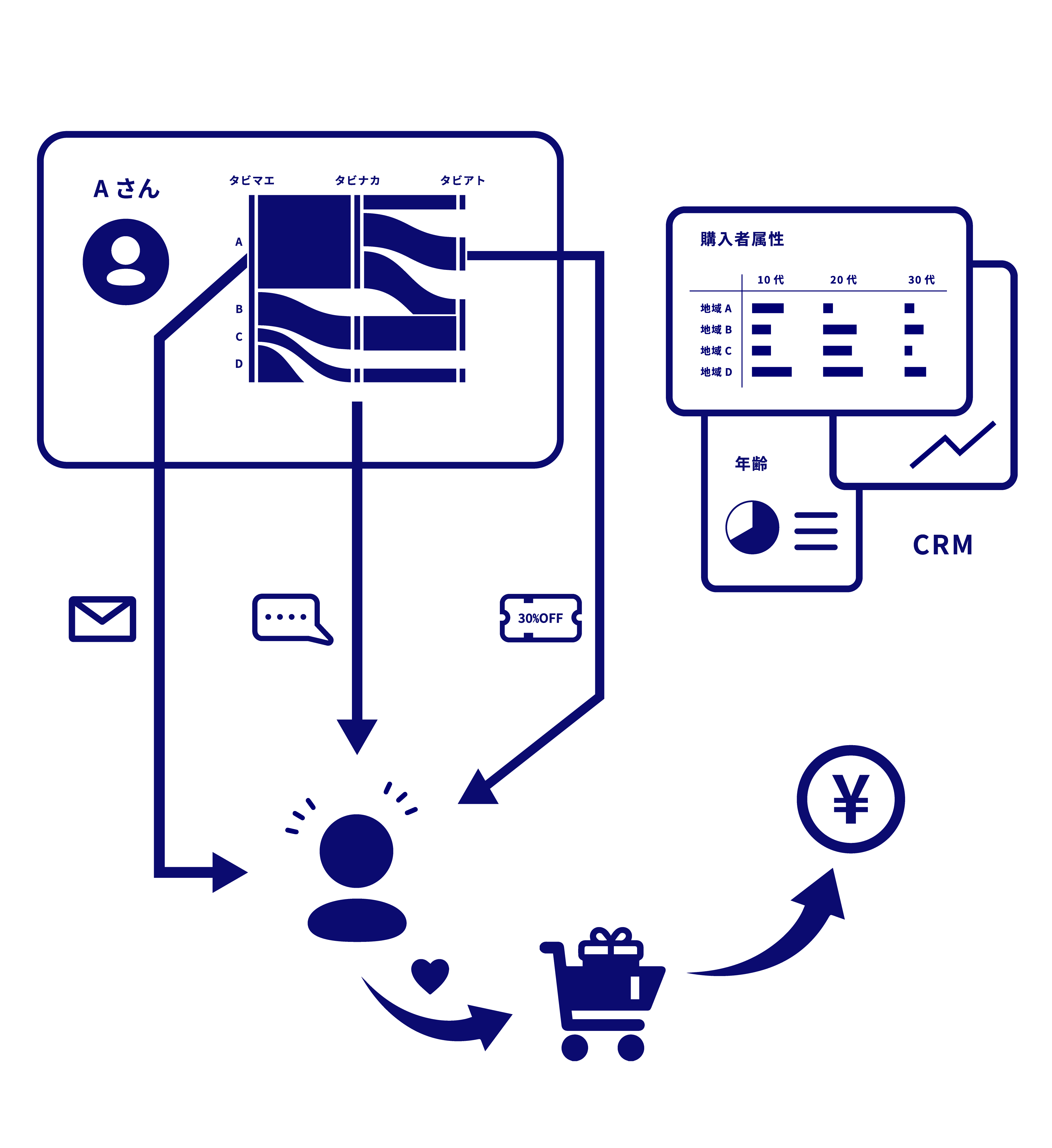 オンライン・現地での顧客行動を大局的に把握しつつ、顧客一人ひとりに焦点を当てて徹底的に分析。この分析を基に、サービスの本質的な定義や現在の改善事項に対する優先順位を明確に整理します。